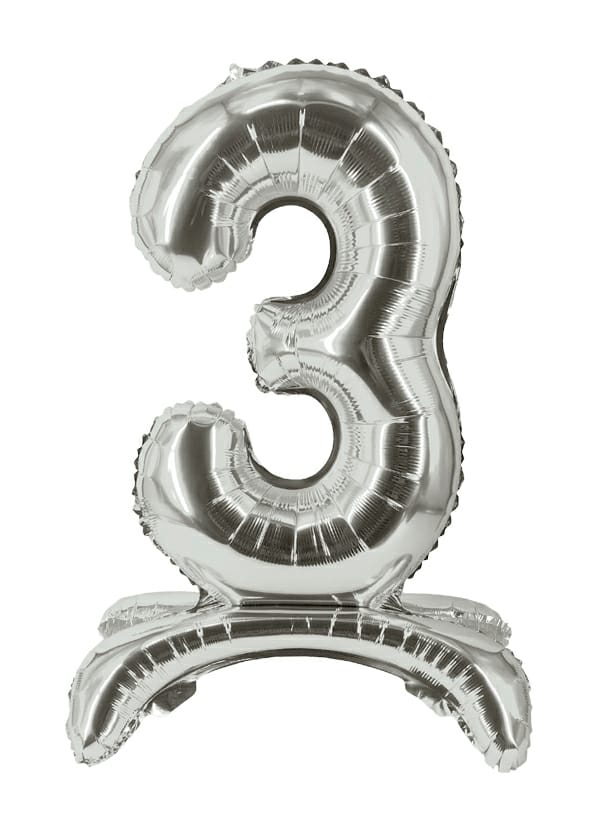 Silberner Zahlenballon mit Fuß zum Hinstellen. Höhe 40 cm.