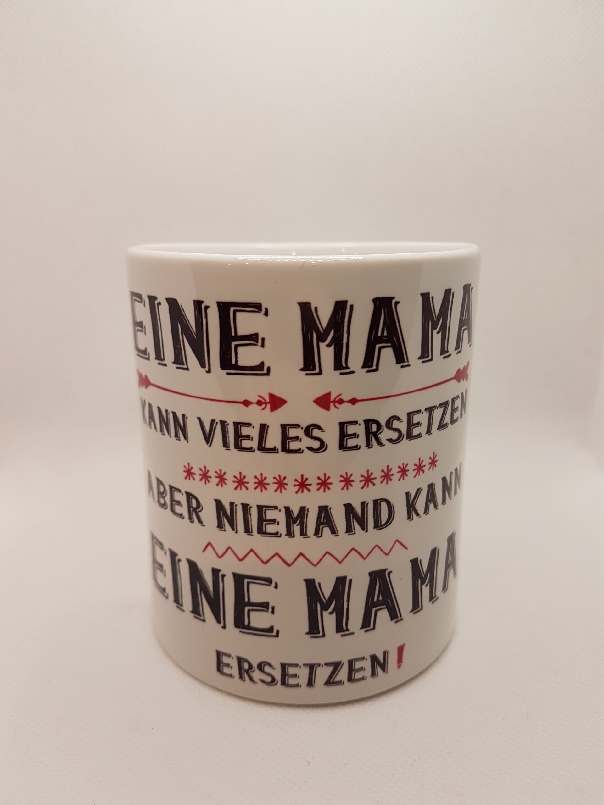 Weiße Tasse mit Aufdruck „Eine Mama kann Vieles ersetzen, aber Niemand kann eine Mama ersetzen!“